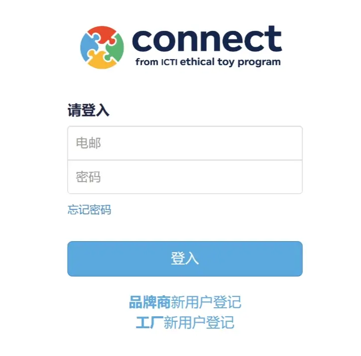 在网上申请加入玩具业责任规范(IETP)。 首次加入项目及希望更新证书的工厂请于 Connect 平台展开申请。