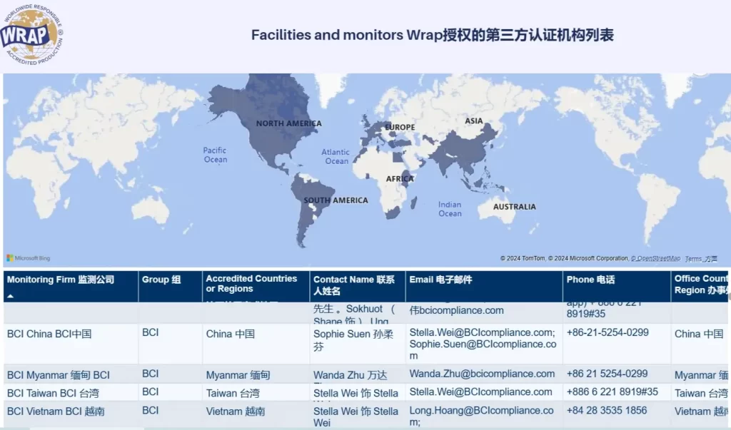 WRAP机构制定和维护WRAP验厂标准,它自己不进行实际验厂,而是授权第三方认证机构来执行验厂活动。Wrap不指派审核机构,工厂可以自行选择审核机构来进行Wrap验厂。